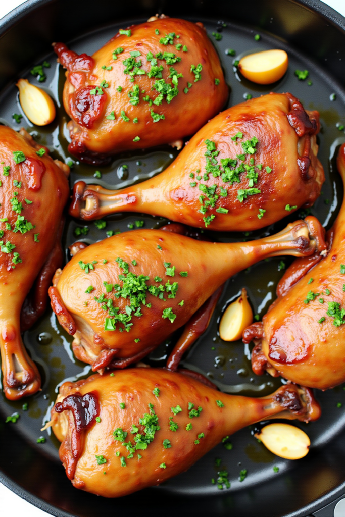 - For a crisp finish, heat a non-stick or cast iron skillet over medium-high. Add duck legs, skin side down, and cook for 4-5 minutes until the skin is golden and crisp. Alternatively, place under a broiler for a few minutes.