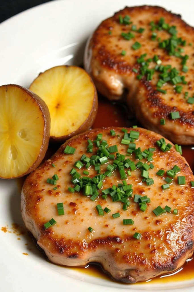 This meal is a complete plate as-is, but it pairs beautifully with a crisp side salad or steamed green beans. For a finishing touch, top the pork chops with a dollop of herbed butter or a squeeze of lemon to brighten the flavors.