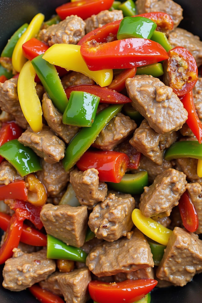 Stir-frying calls for high heat and quick movement. Use a wok or large skillet, making sure it’s hot before adding the beef to achieve that irresistible sear. Cook the steak in batches if needed to avoid overcrowding, then toss everything together with peppers, onions, and your crave-worthy sauce.